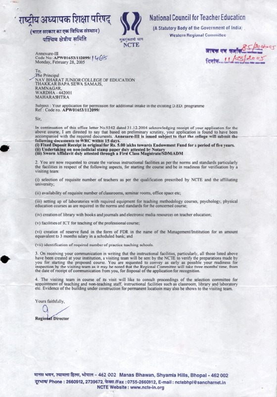 एज्युकेशन,(डी.एड.)अतिरीक्त जागा